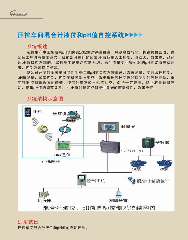 壓榨車間混合汁液位和pH值自控系統(tǒng)